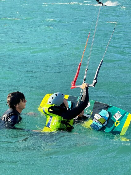 • Learn the basics of kitesurfing with a theory lesson and apply them practicing in the water
