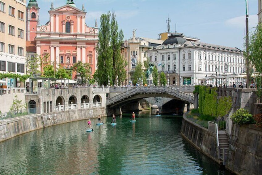 Voted Best Summer Tour in Ljubljana several times, paddle-boarding in Ljubljana is a unique experience, as Ljubljana is currently the only European capital that offers an intimate experience of stand-up paddle-boarding through the very heart of town.