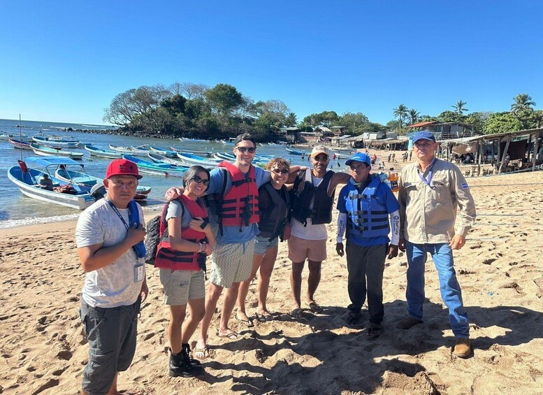 Departure by boat from Los Cobanos, sailing along the coast.