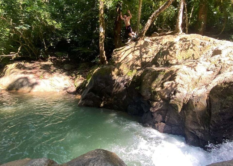 Begin the day with a pickup from your accommodation in Manuel Antonio and embark on a journey down the Pacific coast toward Nauyaca Waterfall. Upon arrival, marvel at exotic wildlife in the rainforest and enjoy time to jump off the edge of the waterfalls and swim in the mountain-fresh river pools.