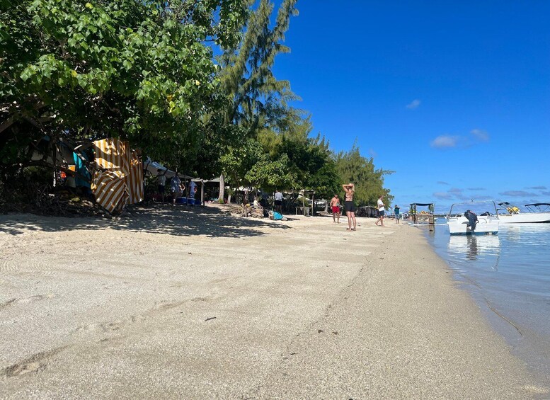 After lunch, enjoy free time on the island to relax on the beach, swim in the shallow lagoon, explore the islet, or browse small souvenir stalls before heading back to Flic en Flac in the afternoon around 14:30–15:00.