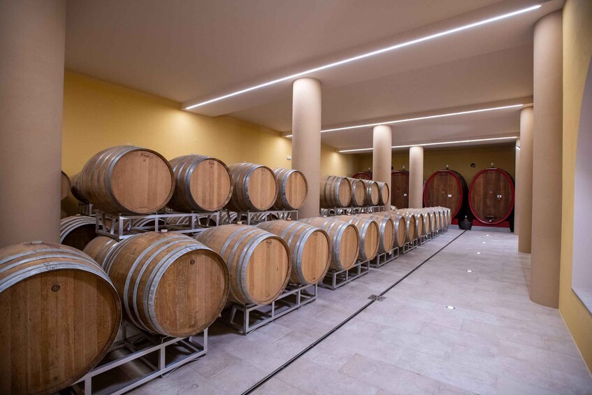 Pay a visit to a modern winery located in the countryside. Get a close look at the vineyards and learn the production process of Vino Nobile di Montepulciano DOCG. After a wine tasting session, head back to the town center to visit an underground wine cellar.