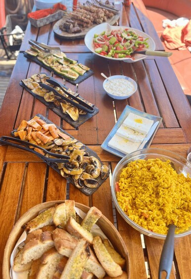 - Enjoy a fresly prepared traditional Greek meat and veggie barbecue with drinks on board