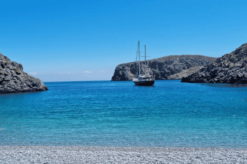 Select a tour with transfer from your accommodation(under purchase on the spot for 20 euros/person), or meet the yacht directly at Ioannis Diakoftis pier in the morning.