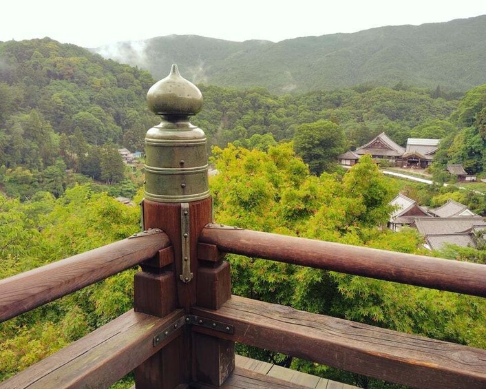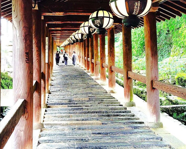 Walk through the elegant wooden corridor that leads up the mountain, steeped in history and serenity.