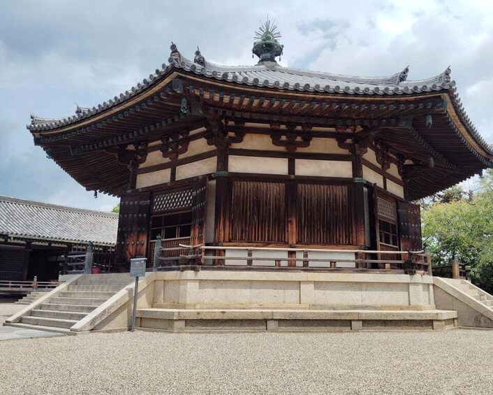 One of the most intriguing features of Hōryū-ji is the Yumedono, an octagonal structure housing the Savior Kannon statue. This sacred figure has transcended over 1,400 years, offering a profound connection to Japan’s spiritual past. Seeing this historic statue up close will undoubtedly be a highlight of your visit.