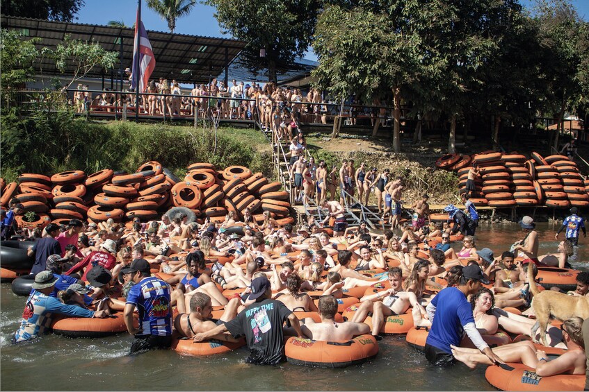 Jungle Tubing is the largest Pai tipsy tubing event by far (averaging 450+ tubers per trip!), and definitely the most action packed. More time floating the Pai River, more tipsy stops (read: bars), more DJs, more games, and without a doubt, more party!