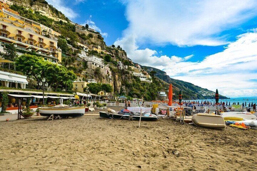 Stroll through the breathtaking streets of Positano, where pastel-colored houses cascade down the cliffs, offering spectacular views of the Tyrrhenian Sea. Begin your journey form the iconic Church of Santa Maria Assunta, famous for its stunning majolica-tiled dome and sacred Byzantine icon. Visit the Piazza dei Mulini, the heart of the town, before wandering through charming alleys lined with artisan boutiques, local cafés, and lemon-scented gardens. Soak in the postcard-perfect scenery, where fishing boats bob on crystal-clear waters and luxury yachts anchor offshore. Your expert guide will share the fascinating history, legends, and cultural secrets of Positano, from its Roman origins to its status as a beloved retreat for artists and travelers. Along the way, enjoy hidden viewpoints, secret staircases, and breathtaking photo opportunities at every turn.