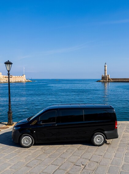 We are an authorized company employing professional drivers for your safety and comfort. We primarily handle transfers to and from the airport, but we also cater to private excursions and transportation for weddings or other events. Our drivers are trained to serve you with professional courtesy. Our mission is to provide discreet, quality transportation with a driver at competitive prices, managing all requests with a high level of responsibility and responsiveness, whether it's a simple transfer from the airport/port or a multi-day exclusive VIP transfer. Upon your arrival at the airports or ports of Crete, our driver will be waiting for you at the arrivals exit to offer you cool and refreshing water. They will escort you to the vehicle and provide you with wet wipes. You can then sit comfortably and enjoy the journey to the hotel. Our vehicle is equipped with USB and Type-C ports, as well as free Wi-Fi.