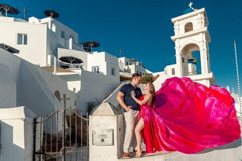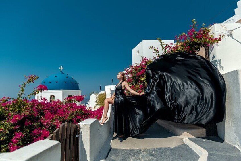 Photoshoot With Flying Dress in Santorini