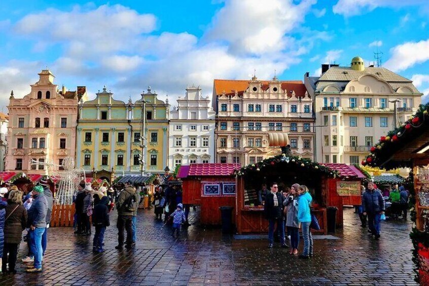 Explore Pilsen’s rich history through iconic landmarks like the majestic St. Bartholomew’s Cathedral, located in the heart of the lively Namesti Republiky square.