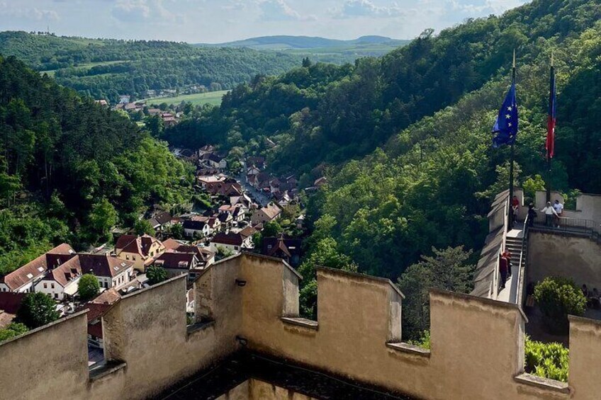 Your journey begins at the breathtaking UNESCO Karlštejn Castle, where you'll take in stunning views of the charming village and surrounding nature.