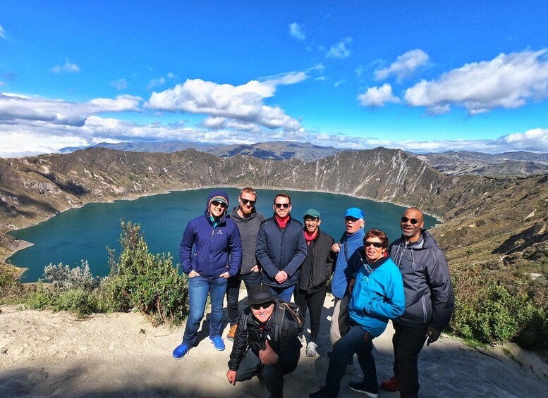 Guided tour in Quilotoa. Explore the 3 km wide volcanic lake with turquoise waters.