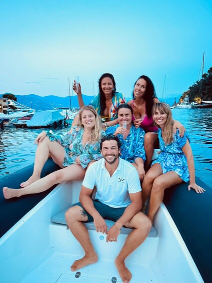 Immerse yourself in an unforgettable journey through the crystal clear waters by boat, where every wave tells a story and every bay hides a treasure. Enjoy the view of the timeless village of Santa Margherita Ligure, Paraggi, and Portofino.