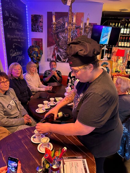 After this short break, we will set off across the Niederwald, enjoying the shade, to our magical spots – the Rossel, Eremitage, Zauberhöle, Jagt Schloss… and we have little surprises for you at each location. We'll take the chairlift to Assmannshausen, our “Red Wine Village,” where the next highlight awaits you at the Art Café. We won't reveal everything, but we can tell you this much: it doesn't get any better than this. We will return to Rüdesheim by boat, where we will say goodbye on Drosselgasse with a shot of schnapps. The duration of this tour is approximately 5 hours.