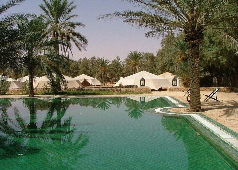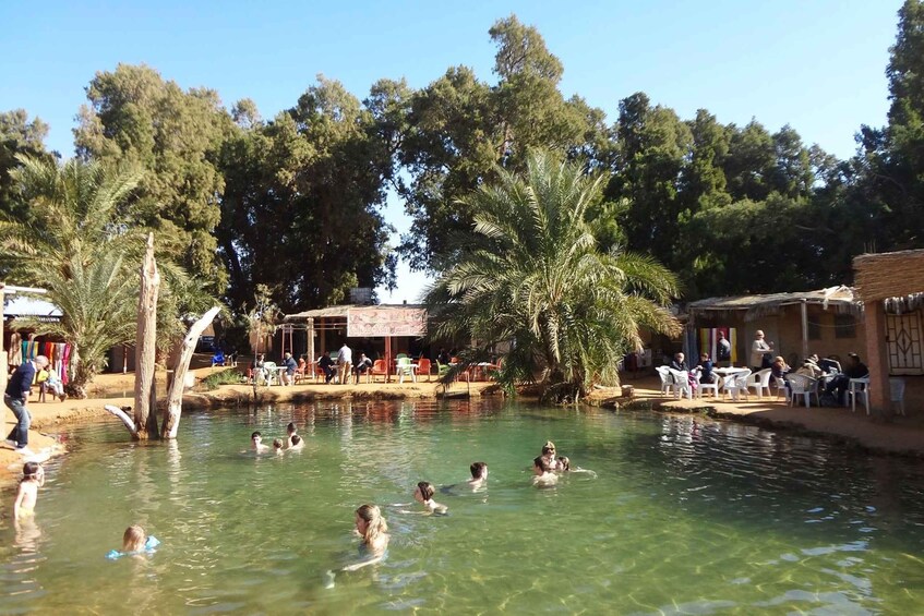 Wake up early for a final moment of relaxation in the hot springs of Ksar Ghilane. After a leisurely lunch, you'll head back to Djerba or Tozeur, where you'll be transferred to your hotel for dinner and a well-deserved night's sleep.
