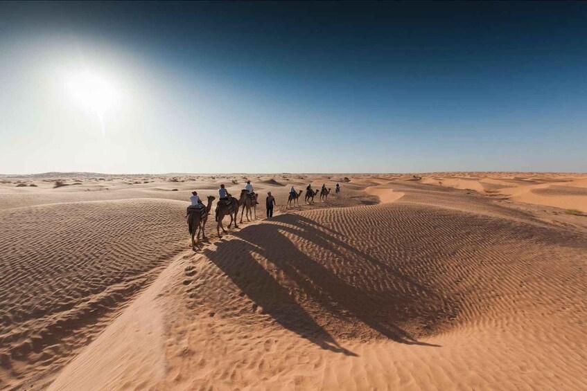 On arrival at Djerba or Tozeur airport, a warm welcome awaits you before a transfer to El Mellaha, via Douz, the gateway to the desert. You'll discover the world of camel drivers before settling into your bivouac. Dinner by the fire under a starry sky and overnight in a Bedouin tent for total immersion in authentic Saharan life.