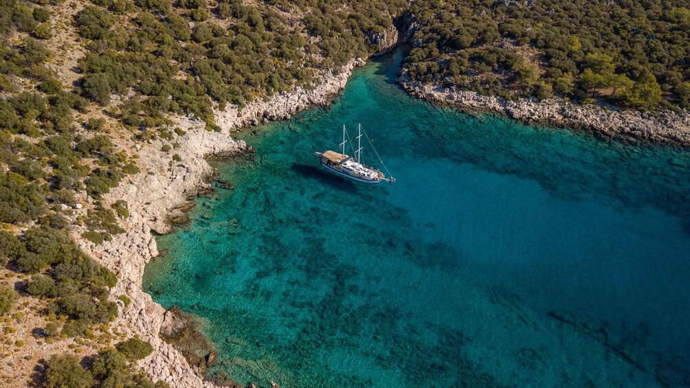 Our day will kick off with a breezy sail to Kas, where we’ll make a pit stop to take a dip in the sea before docking. You’ll have the morning to explore the town at your own pace, with various handicraft shops and souvenir stores to peruse. Stroll down the charming cobblestone streets or grab a seat at a local café and soak up the atmosphere.