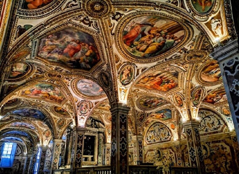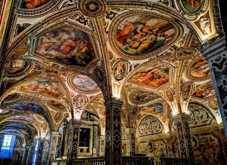 We will continue to San Pietro a Corte, the palace of Arechi II, a Lombard prince, and through the Via dei Mercanti, we will arrive at the Cathedral, a very important Romanesque monument, with its beautiful atrium, its precious ambos and its wonderful crypt dedicated to the Evangelist Apostle St. Matthew.