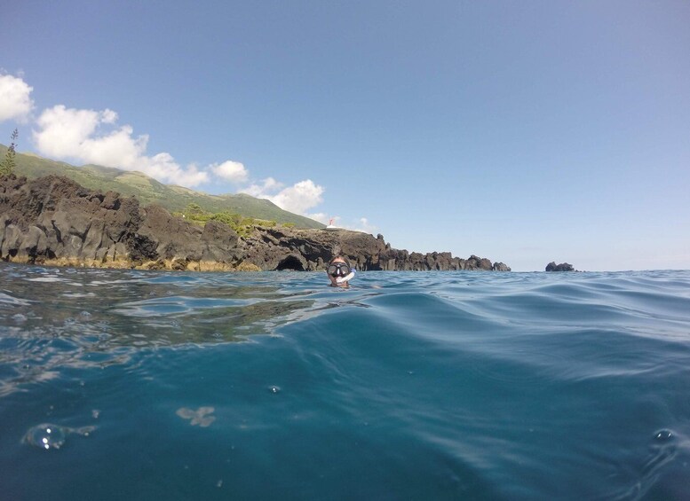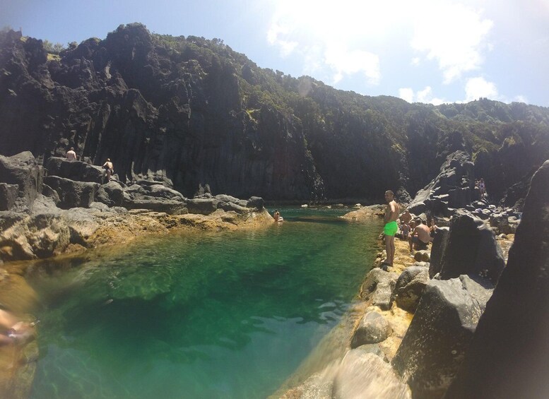 Enjoy a dip in a natural pool, amidst the basalt rocks. Snorkel in the pool and see the diversity of colorful fish that inhabit the seas of the Azores.