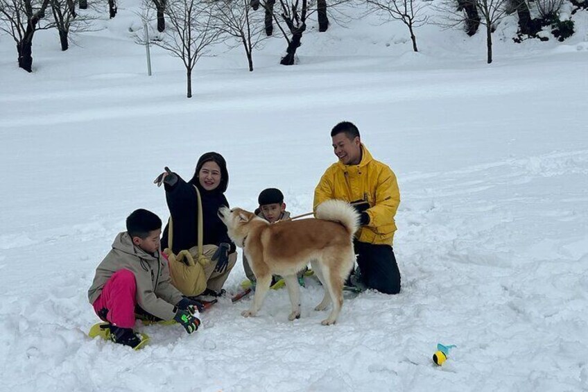 Snowshoe Experience in Akita Yuzawa Winter Park with an Akita Dog