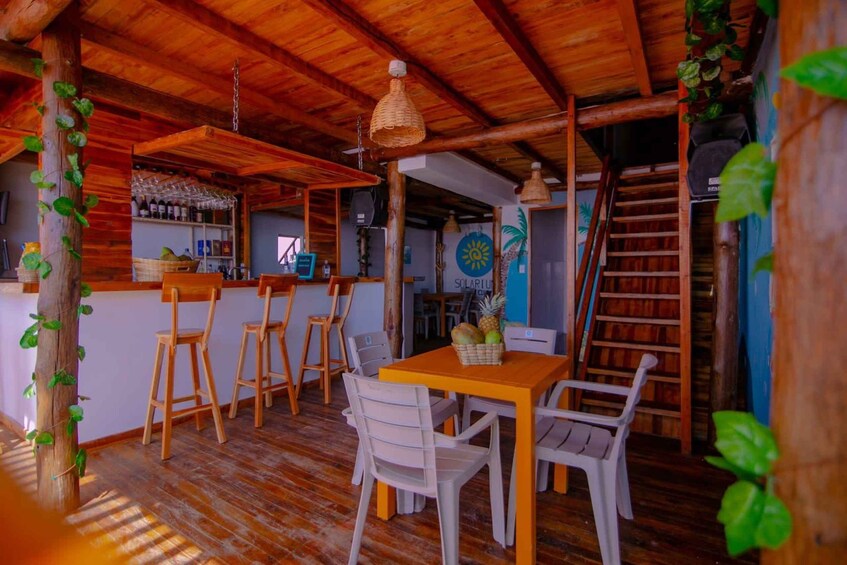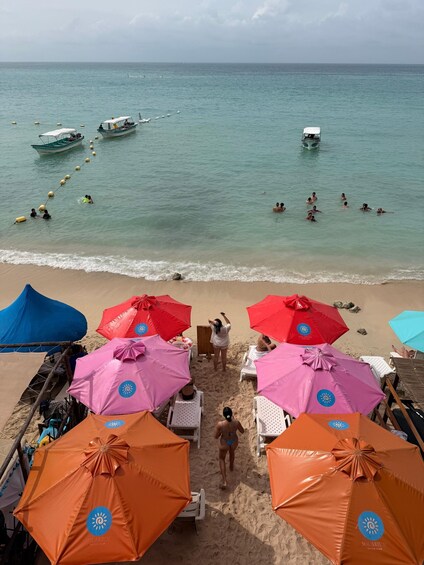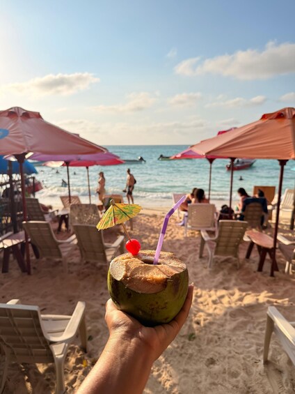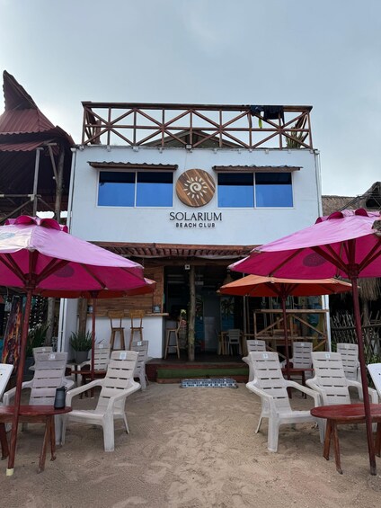 Enjoy an unforgettable day at Solarium Beach Club, a beachfront spot on Isla Barú that's perfect for disconnecting from the daily grind and enjoying the Caribbean in a peaceful and natural setting. The experience kicks off in Cartagena, where the team assigns pick-up points and times based on your location, making it easy to meet up and board an air-conditioned bus to Barú. When you get to Playa Blanca, you'll get off the bus and take a short walk to the pier, where you'll board a boat for about 7 minutes to go straight to Solarium Beach Club. Upon arrival, you'll be greeted with a welcome cocktail, marking the start of a day of relaxation by the sea. During the day, you'll have access to the beach, sun loungers, and beach club facilities, perfect for swimming, sunbathing, or just relaxing to the sound of the sea. At noon, you'll enjoy a typical lunch prepared on the spot, with a choice of fried mojarra or chicken, accompanied by a refreshing drink, highlighting the traditional flavors of the Caribbean. You can enjoy the rest of the afternoon at your own pace, taking advantage of the tranquility of Isla Barú's natural environment. In the afternoon, you'll head back the same way: a 7-minute boat ride to the Playa Blanca pier, a short walk, and an air-conditioned bus transfer to the same pick-up points in Cartagena. An ideal plan for those looking for an authentic beach day, good food, and a well-organized Caribbean experience, with no worries and all the essentials included.