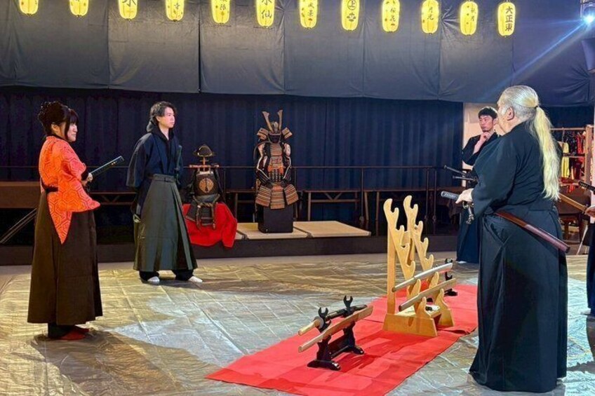 After the show, enjoy a guided introduction to Iaido and learn basic sword movements under professional supervision using training swords. Guests can also see and hold an authentic Japanese blade.