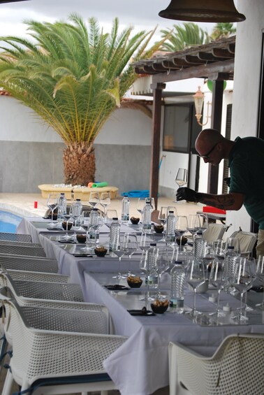 I bring all the glassware, products and setup directly to your villa. You only need a table or kitchen island. The atmosphere is personal, calm and enjoyable, giving you time between wines to relax, talk and fully enjoy the pairings.