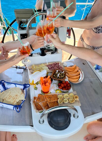 Enjoy a rich homemade aperitif and lunch with local products, accompanied by excellent local wine. If the wind allows, return to Arbatax by sail, with the crew participating in the maneuvers.