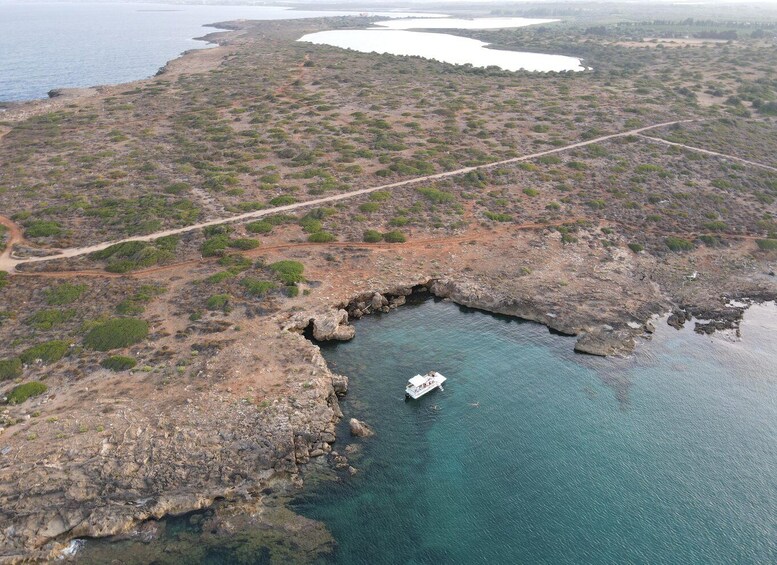 We will meet in Avola, where our skipper will welcome you on board the boat, and start navigating south. The first point of interest we will encounter is the Spiaggia di Eloro and Spiaggia naturista di Marianelli. We will move on until we reach Spiaggia di Calamosche, where we will have our first swimming stop. The trip will continue to the Riserva Naturale di Vendicari (Vendicari Nature Reserve), a protected natural area that includes long unspoilt beaches with fine white sand. Here you will have the opportunity to explore the Vendicari seabed, swimming in its crystal-clear waters and snorkeling with the equipment our staff will provide you with.