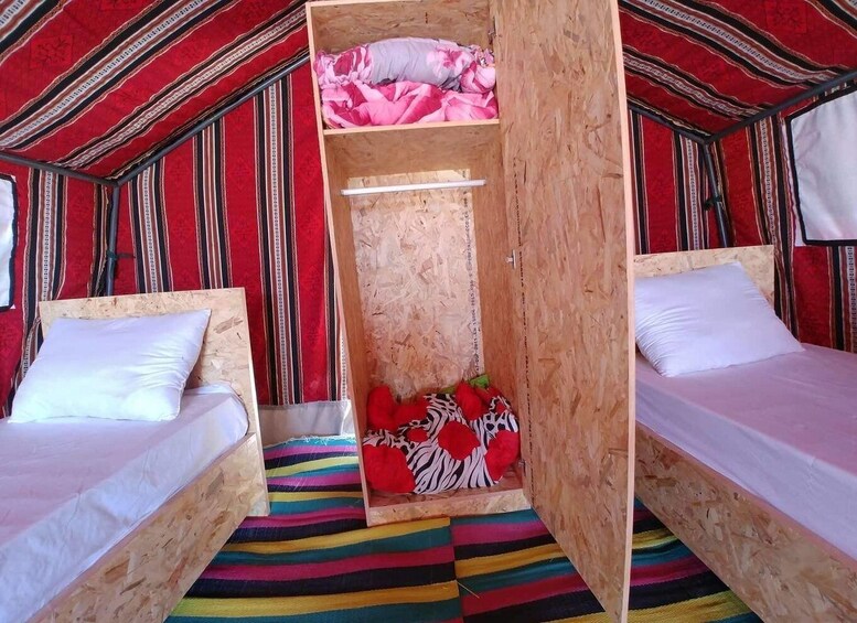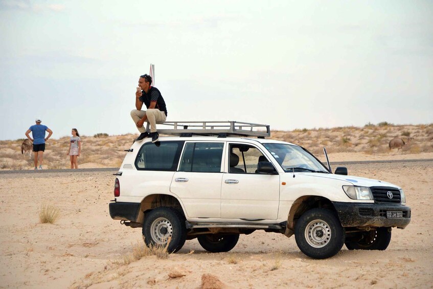 In Douz, visit the local market before heading to the sandy village of Sabria. Here, experience the dunes on camelback and watch the sunset change the color of the sand. Reach your desert camp before nightfall and enjoy an authentic desert night with a campfire and a demonstration of sand bread preparation under the stars. Savor dinner and enjoy an overnight stay in a tent.