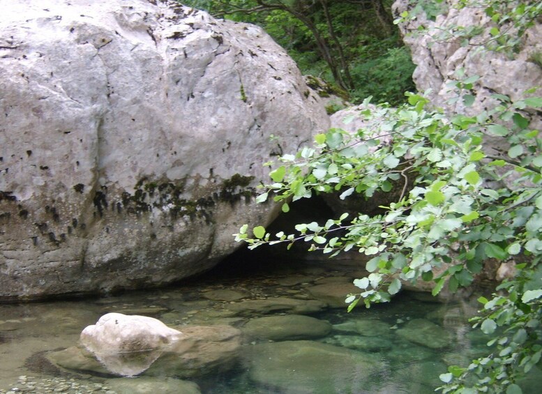 After about 4 hours, you will reach the Voidomatis River springs. Continue through the woods for a while, hiking uphill to exit at Vikos village. The tour covers a distance of about 7.5 miles (12.6 kilometers), passing towering rocks and virgin vegetation. Upon arrival at Vikos, a transfer will be waiting to take you back to Monodendri.
