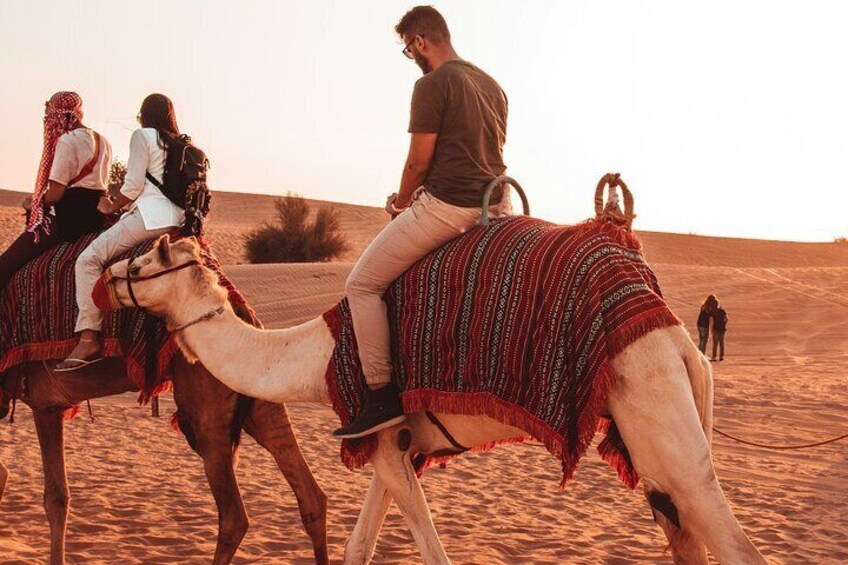 VIP Dubai Desert Safari, Sandboarding Camel Ride and BBQ Dinner