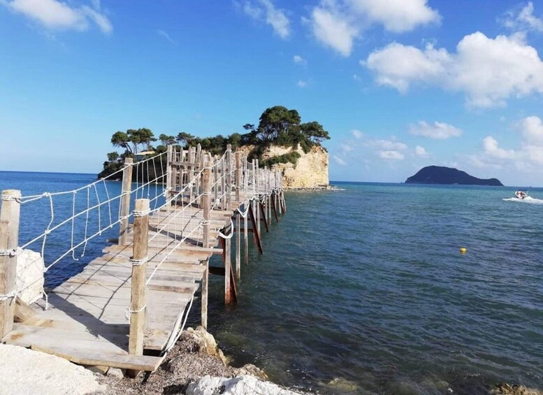 You will drive to the small port of Agios Sostis in Laganas Bay, to Cameo Island, a tiny beautiful piece of land that has its interesting history. It is a hidden treasure that once, centuries ago, was part of Zakynthos. Now it is connected by a small bridge, making the area look like the Caribbean. If you wish to go further than the bridge, you can enjoy the views have a drink at the beach bar, and have a quick swim in the emerald waters.