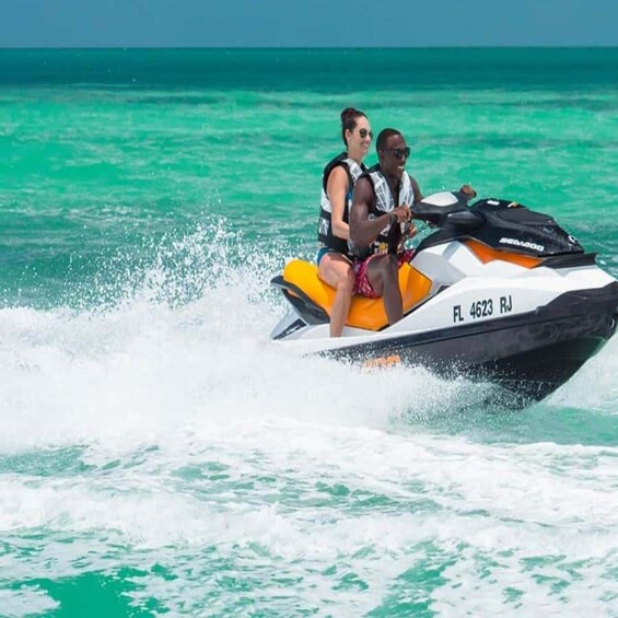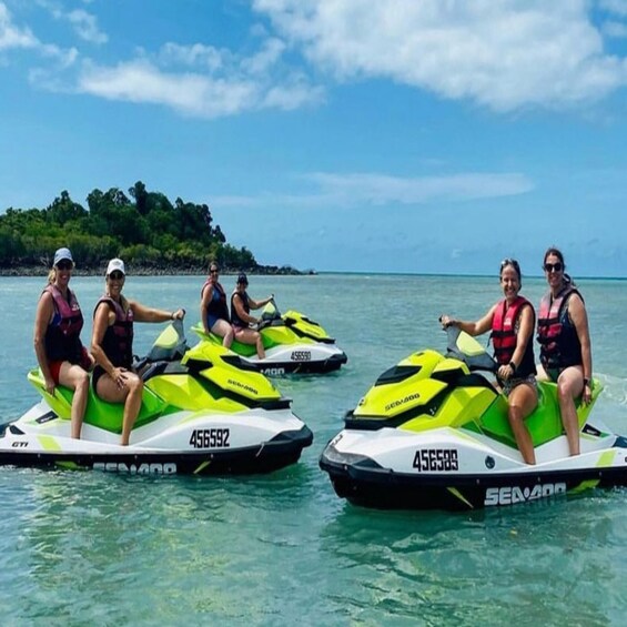 Begin your adventure with a safety briefing and get equipped with life jackets. Then, hop on your jet ski and feel the hum of the engine as you prepare to glide across the shimmering waters of the Indian Ocean.